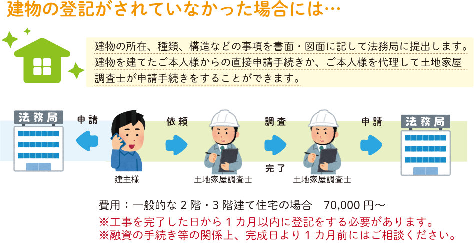 建物表題登記70,000円~(一般的な2階・3階建て住宅の場合)
